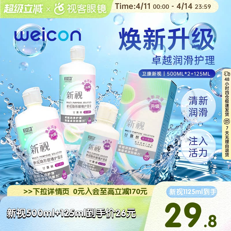 3瓶卫康新视隐形眼镜护理液瓶近视500*2+125ml官网视客旗舰店正品