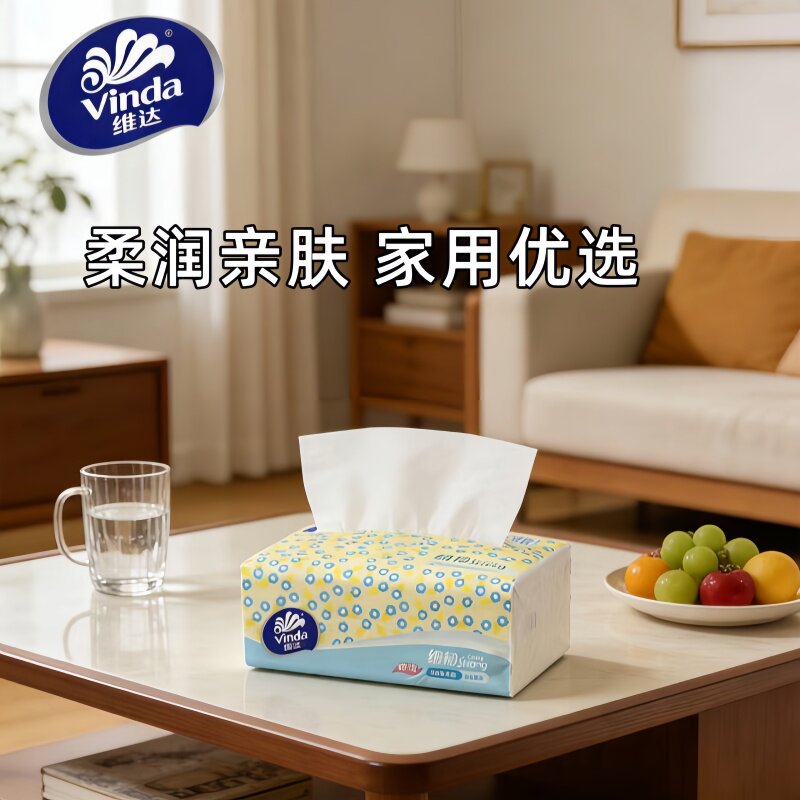 8包维达抽纸家用实惠装抽取式面巾纸柔润亲肤3层100抽原生木浆