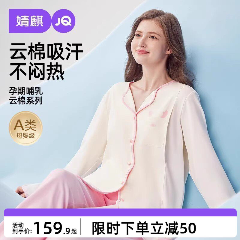 婧麒月子服夏薄款产后纯棉哺乳睡衣孕妇怀孕期待产喂奶家居服套装