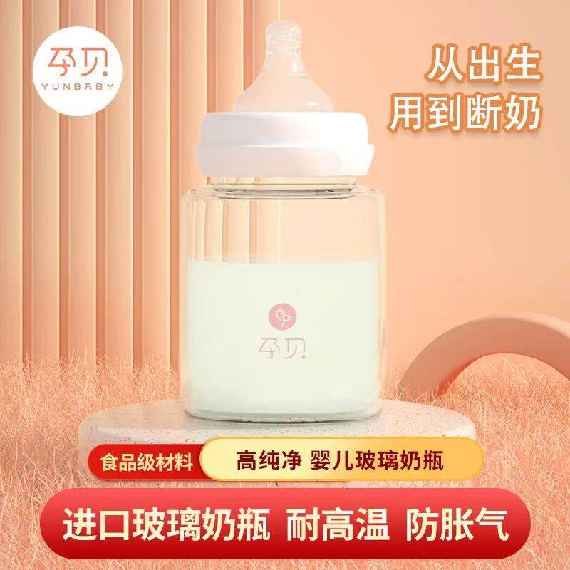 孕贝防胀气玻璃奶瓶宽口径180ml新生儿婴儿防呛奶瓶圆形高硼硅