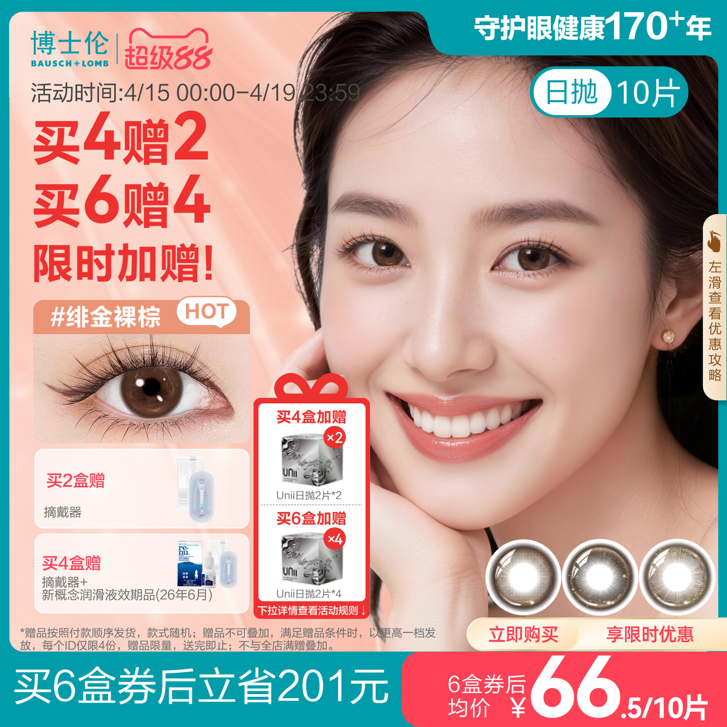 [花色上新]博士伦美瞳日抛10片近视隐形眼镜蕾丝红色悦目节日限定