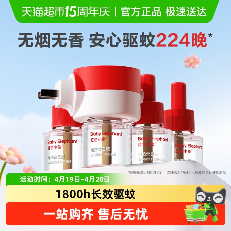 红色小象电热蚊香液驱蚊液无味无香家用温和防蚊灭蚊专用补充液