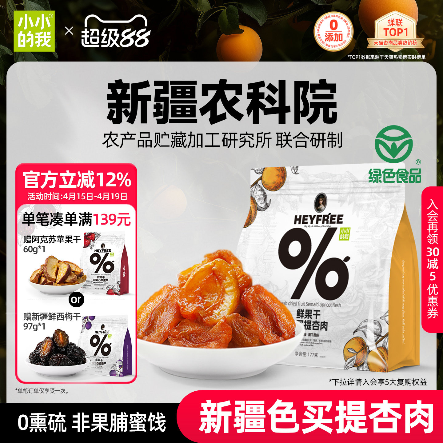 小小的我新疆无核酸杏干农科院杏肉鲜果干天然无添加糖非果脯蜜饯