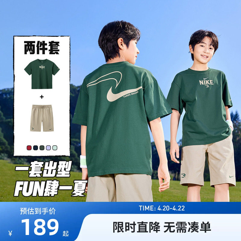 Nike 3brand儿童套装男童短袖T恤短裤五分裤子女童两件套运动夏装