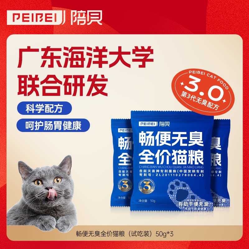 陪贝爆款猫粮试吃畅便无臭呵护肠胃猫粮控毛球粮猫咪益生菌1801