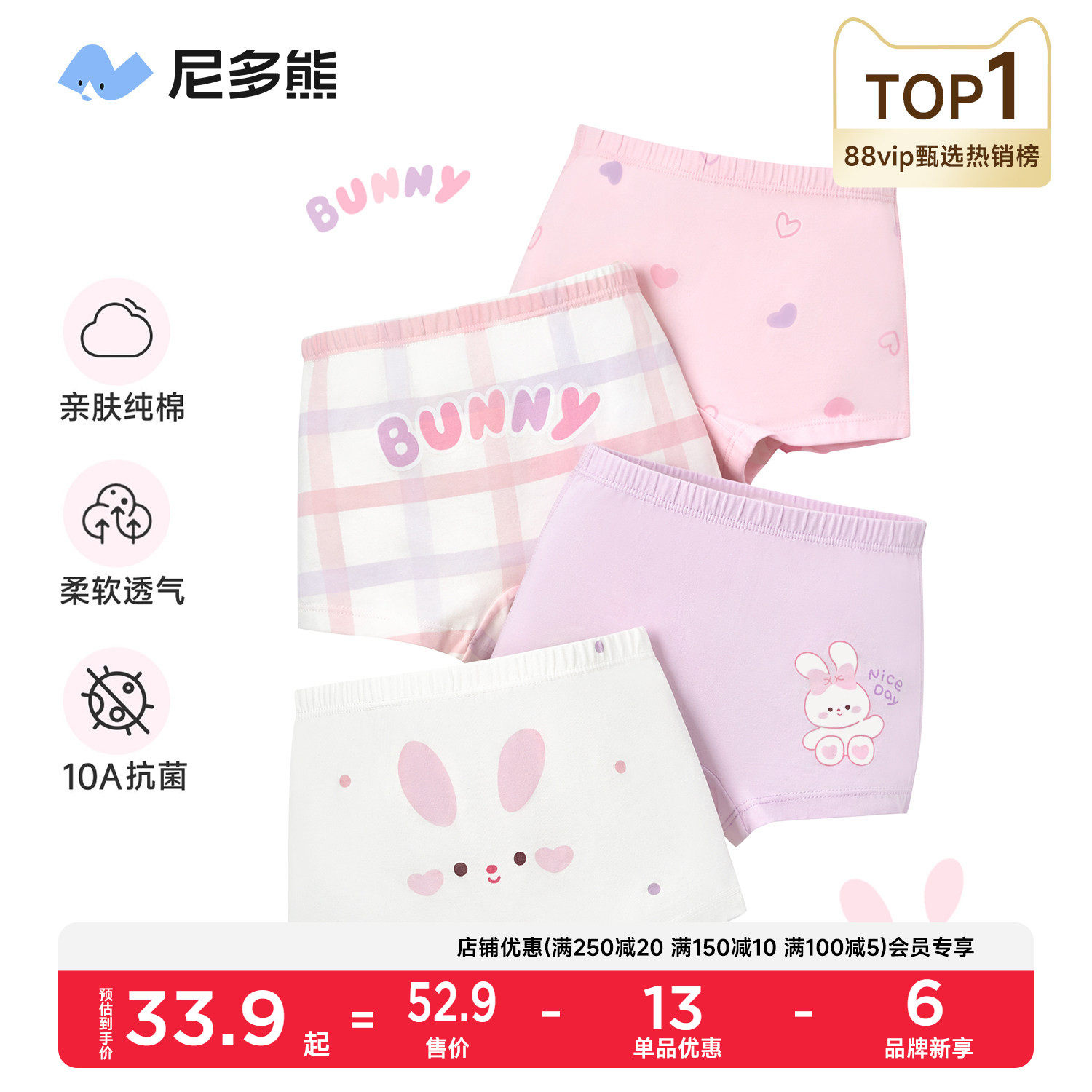 尼多熊女童内裤儿童纯棉平角短裤女宝宝四角内裤中大童女孩不夹PP