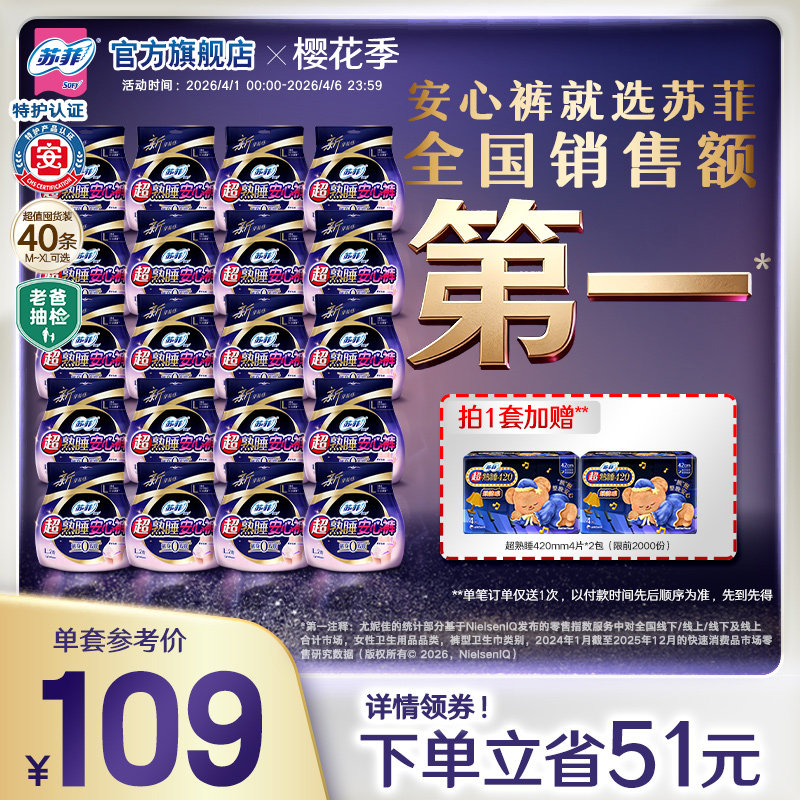 sofy/苏菲卫生巾超熟睡安心裤超薄0皮筋无痕敏感肌安睡裤夜用防漏