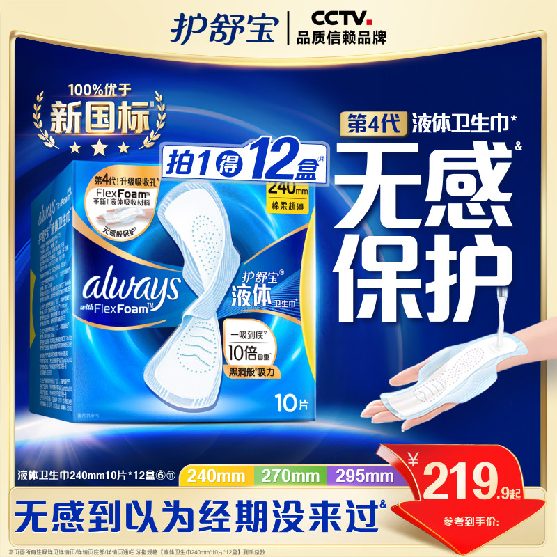 【No.1热销】护舒宝液体卫生巾箱装无感般保护日用姨妈巾官方旗舰