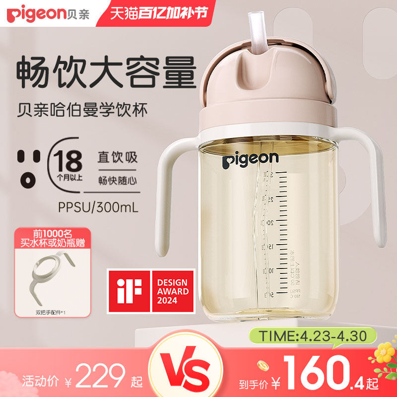 Haberman哈伯曼婴儿PPSU奶瓶学饮直饮吸管水杯贝亲官方旗舰店正品