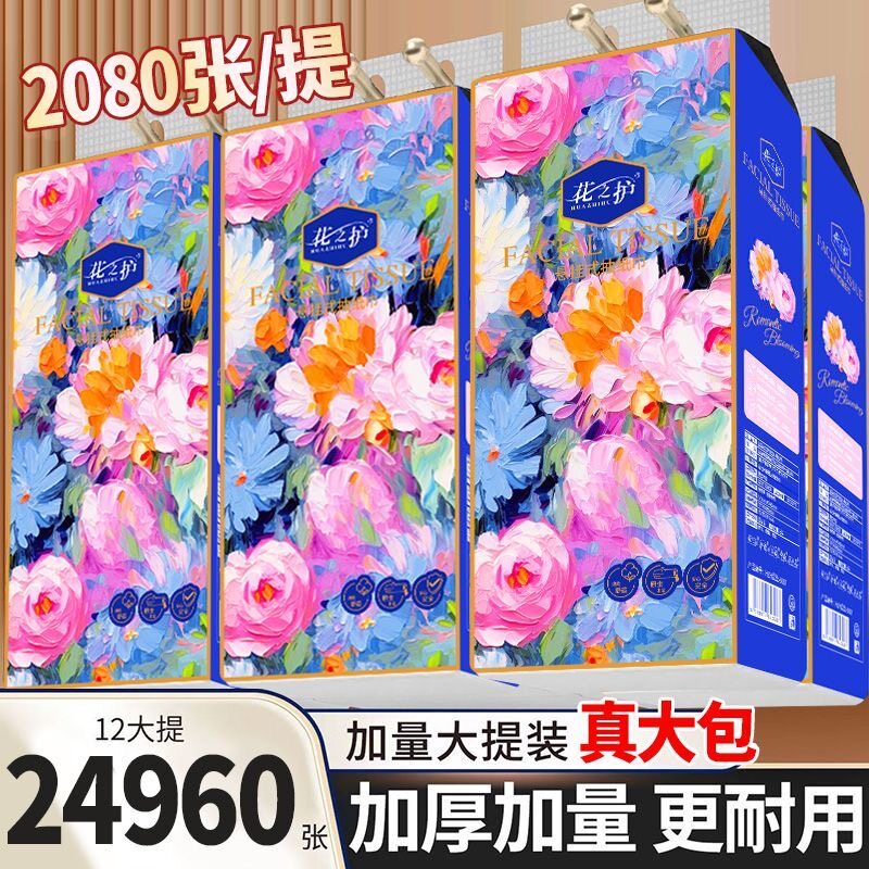 花之护加厚款12大提悬挂抽纸底部抽家用整箱餐巾纸卫生纸纸巾