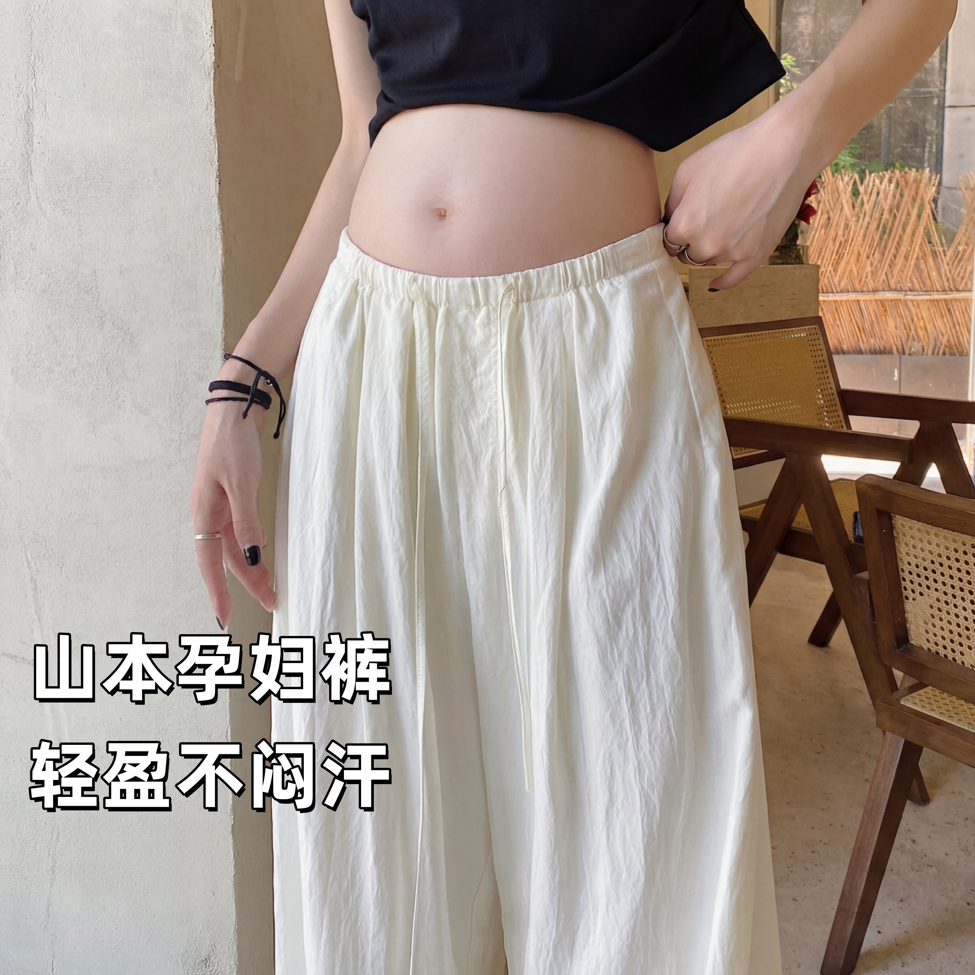 孕妇裤夏薄款山本裤夏季外穿阔腿裤无托腹抽绳春夏休闲裤不勒肚子