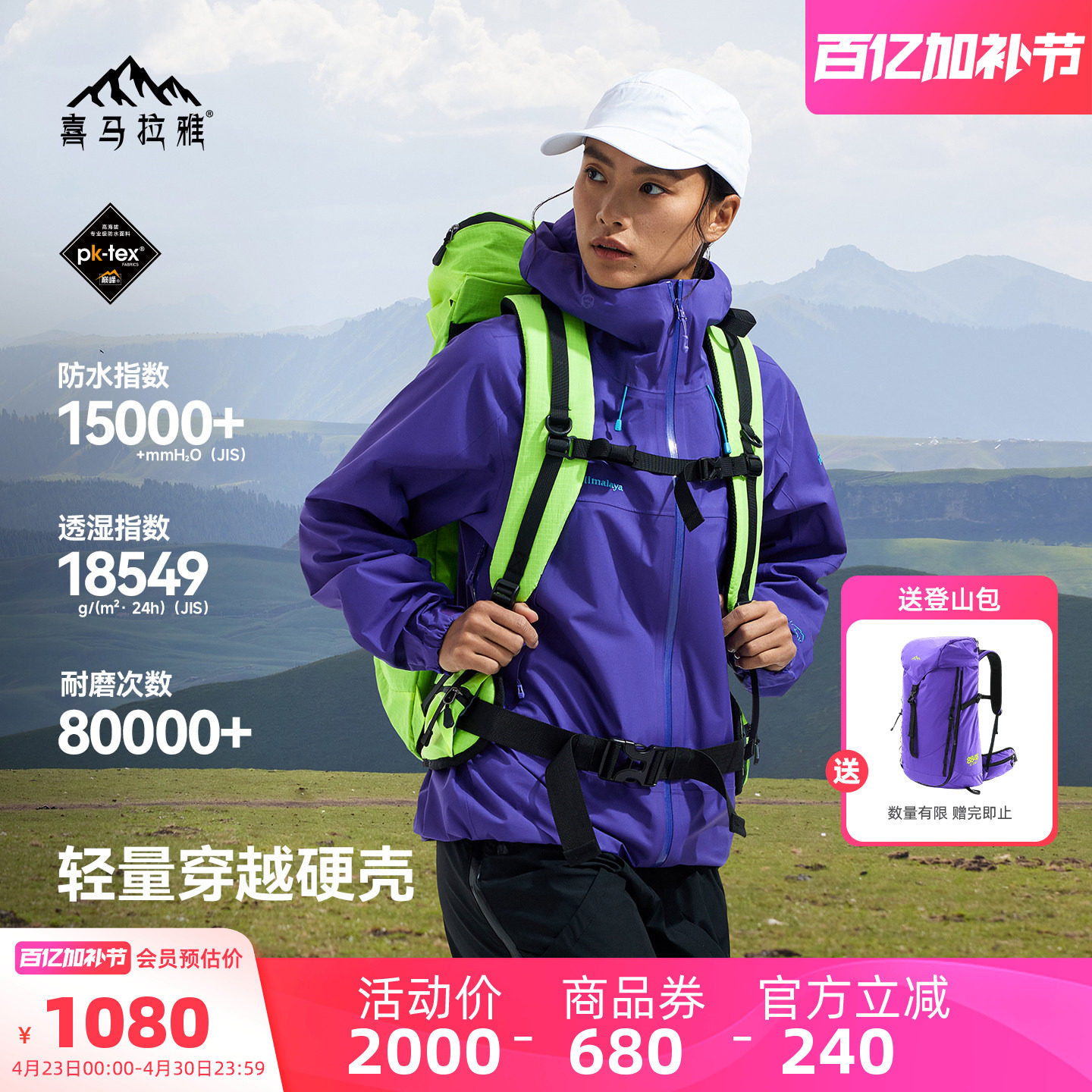 喜马拉雅H3500夏特冲锋衣女款硬壳2026春夏新款防风防水户外外套