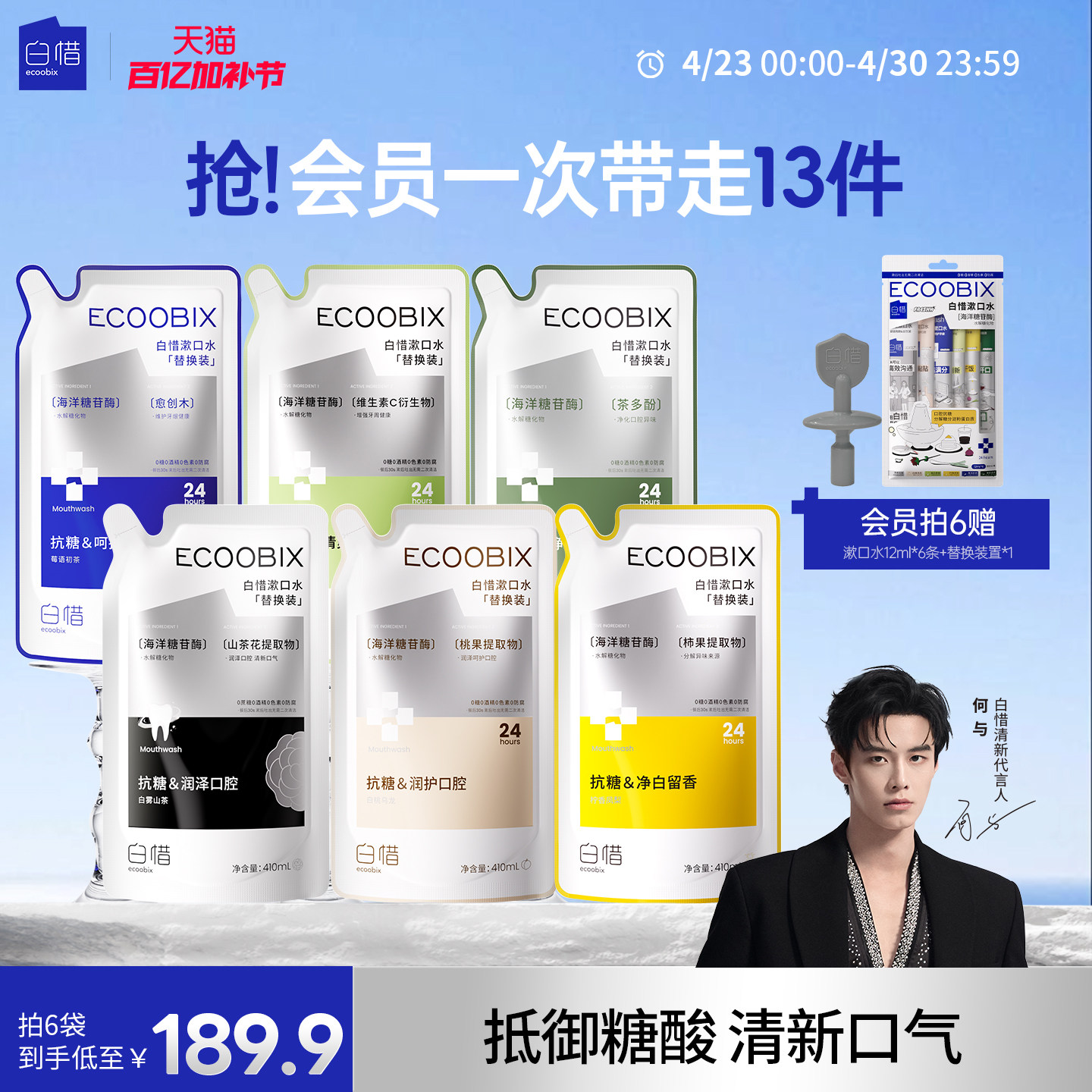 白惜漱口水补充装益生菌持久留香护龈防蛀替换装便携清新口气