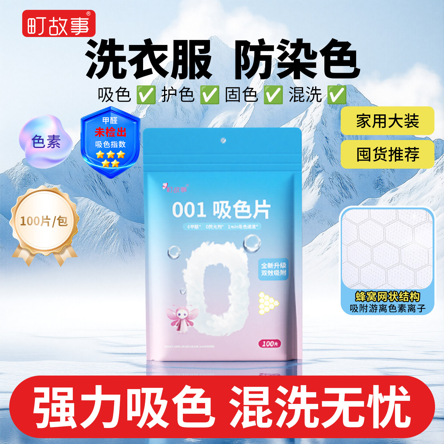 町故事防串染吸色片100片超大包家用洗衣服吸色片纸色母片可机洗