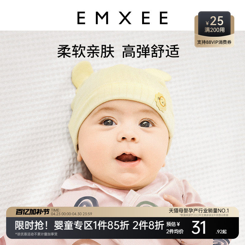 嫚熙婴儿帽子夏薄款新生儿胎帽小月龄婴幼儿无骨宝宝初生护囟门帽