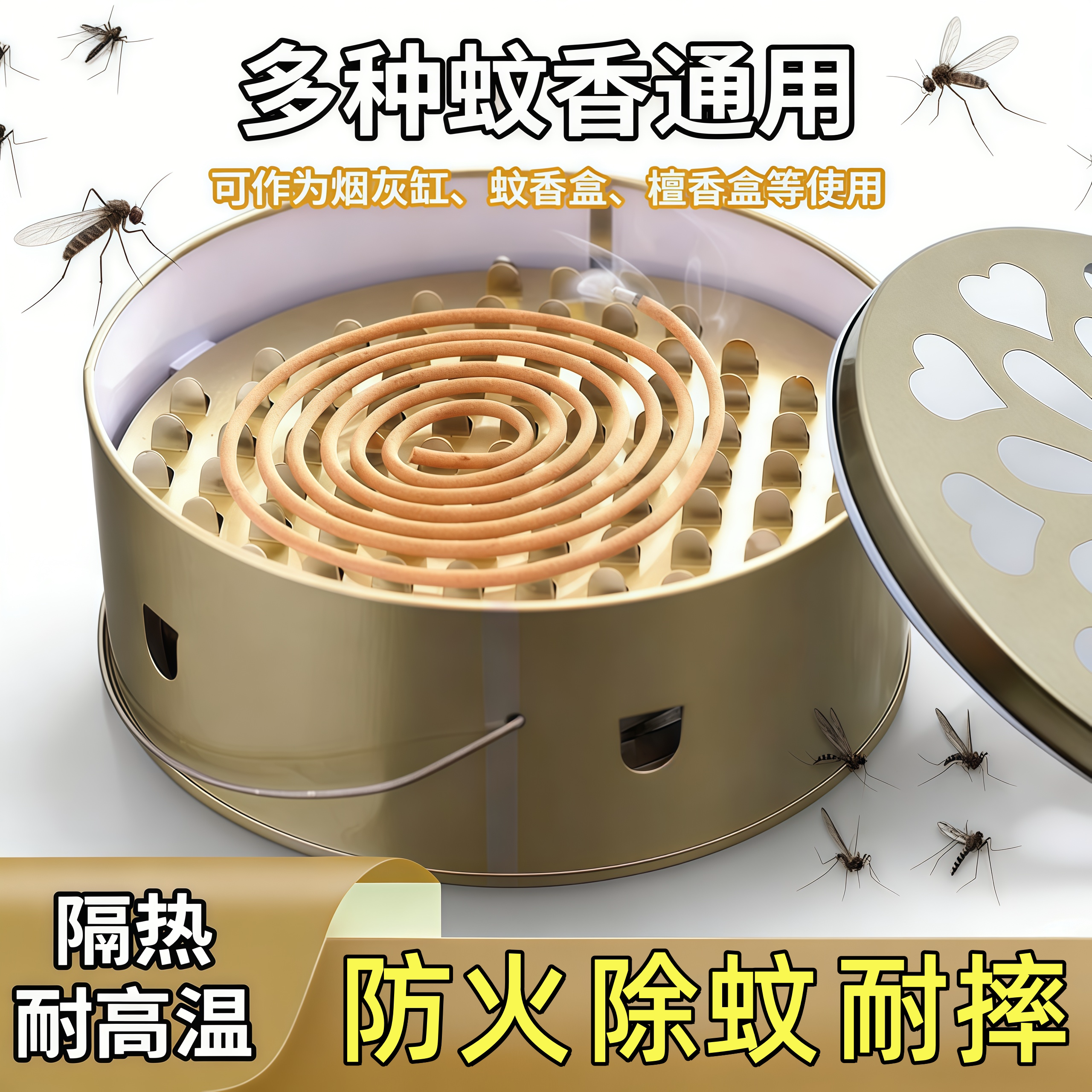 蚊香盘带盖蚊香盒加大号蚊香接灰盘支架户外露营野钓驱蚊驱蚊神器