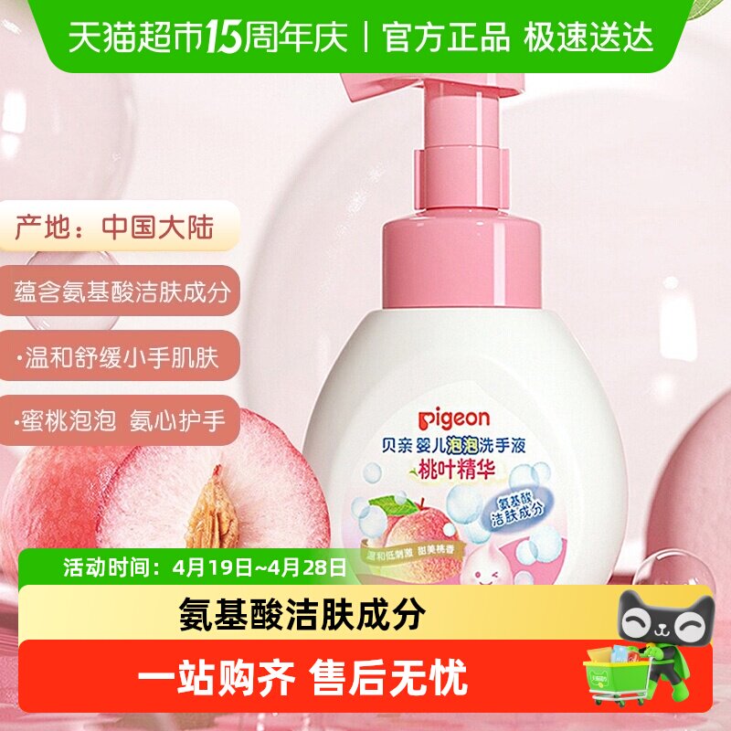 Pigeon贝亲婴儿桃叶精华泡泡洗手液宝宝氨基酸桃子水洗手液