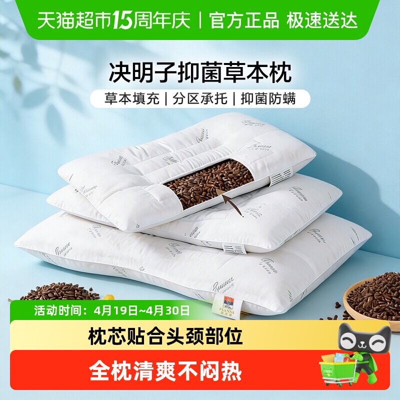 富安娜家纺决明子枕头男女护颈枕学生枕低枕芯单个装枕家用颈椎整