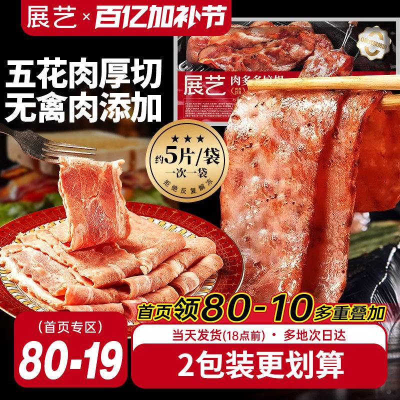 展艺肉多多培根披萨火腿片手抓饼早餐专用美式厚切雪花商用旗舰店