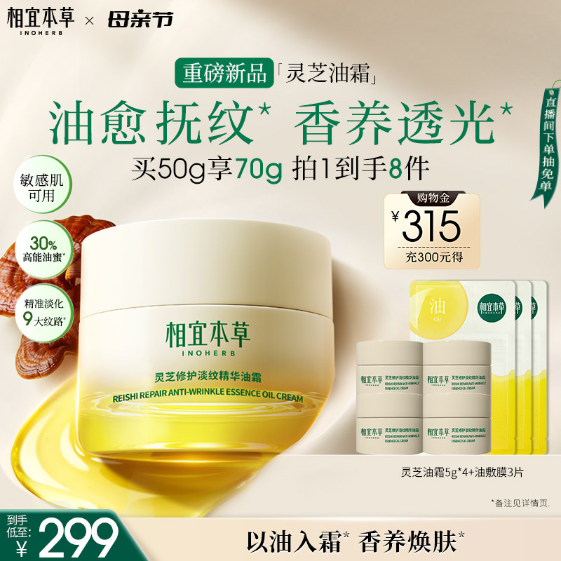 相宜本草灵芝油霜修护淡纹精华抗皱紧致舒缓修护保湿滋养面霜正品