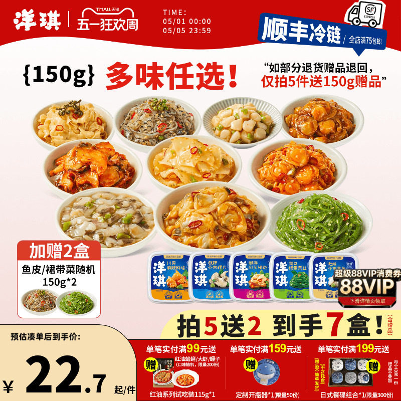 [159元买5送2] 洋琪食品日料小菜芥末章鱼麻辣鲜蛤花甲捞汁小海鲜