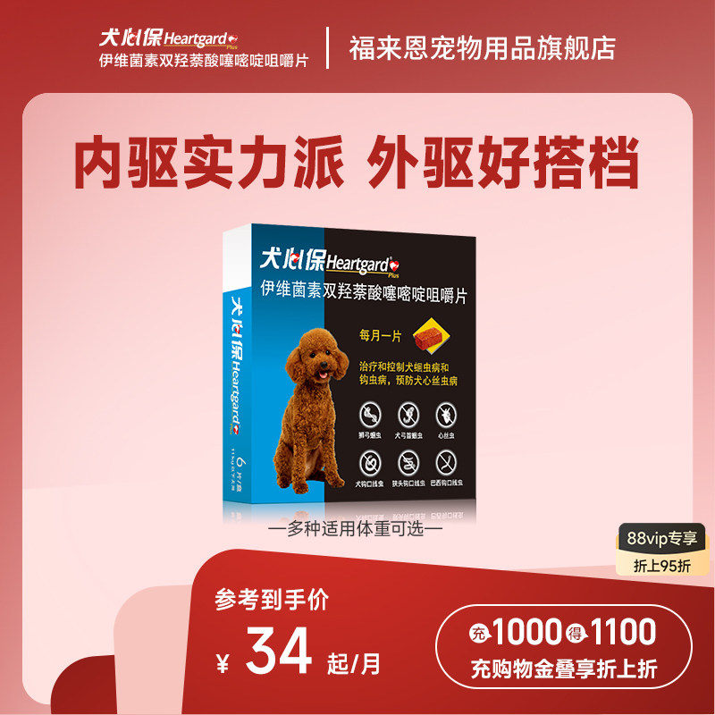 犬心保小型犬体内驱虫幼犬驱虫心丝虫蛔虫口服药6粒装搭配福来恩