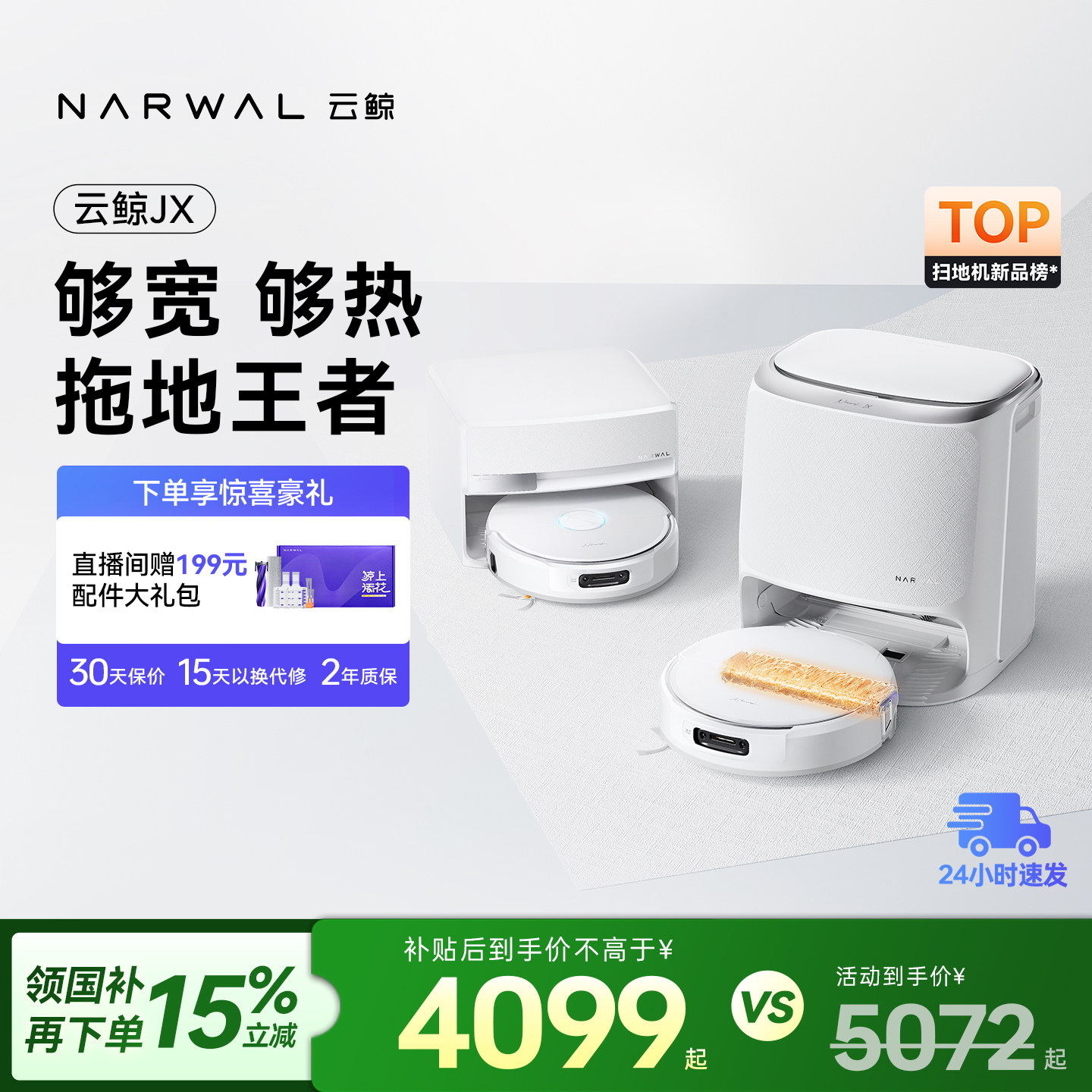 【新品】云鲸宽幅履带活水洗地JX扫地机器人扫地拖地一体自动清洁