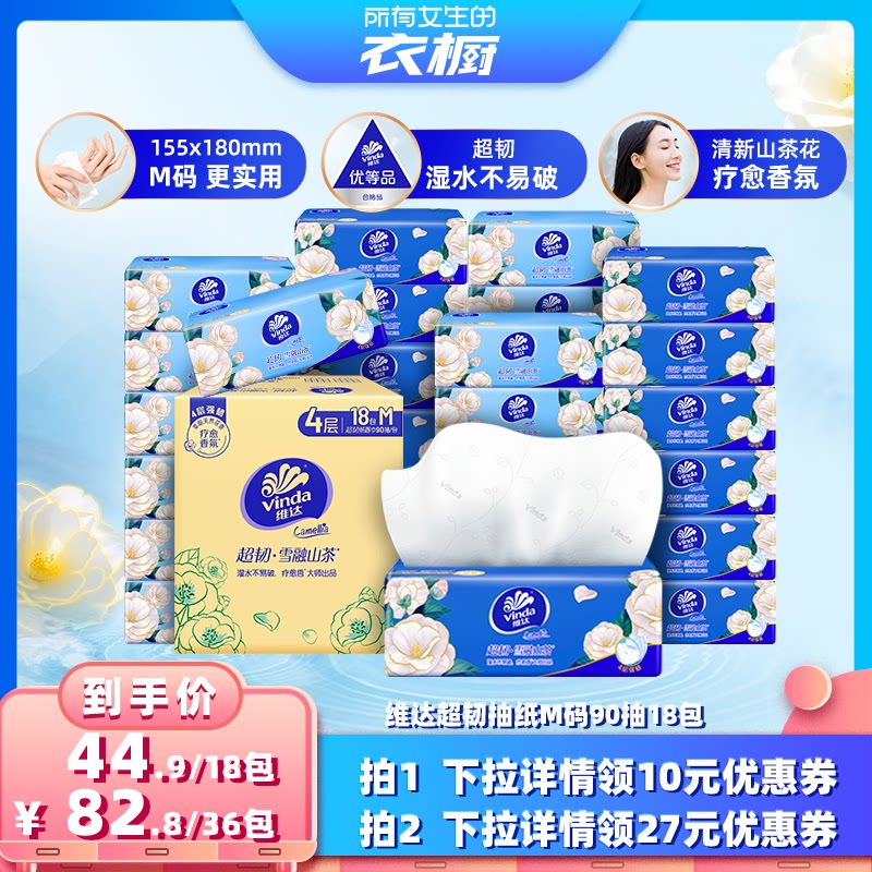 【所有女生的衣橱直播间】维达超韧抽纸纸巾山茶花有香M码18包