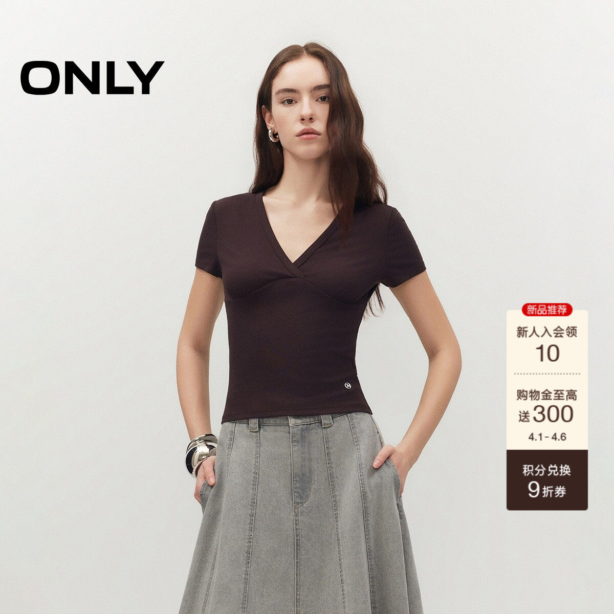 ONLY2026春季新款修身V领立体解构剪裁亲肤柔软针织上衣T恤女