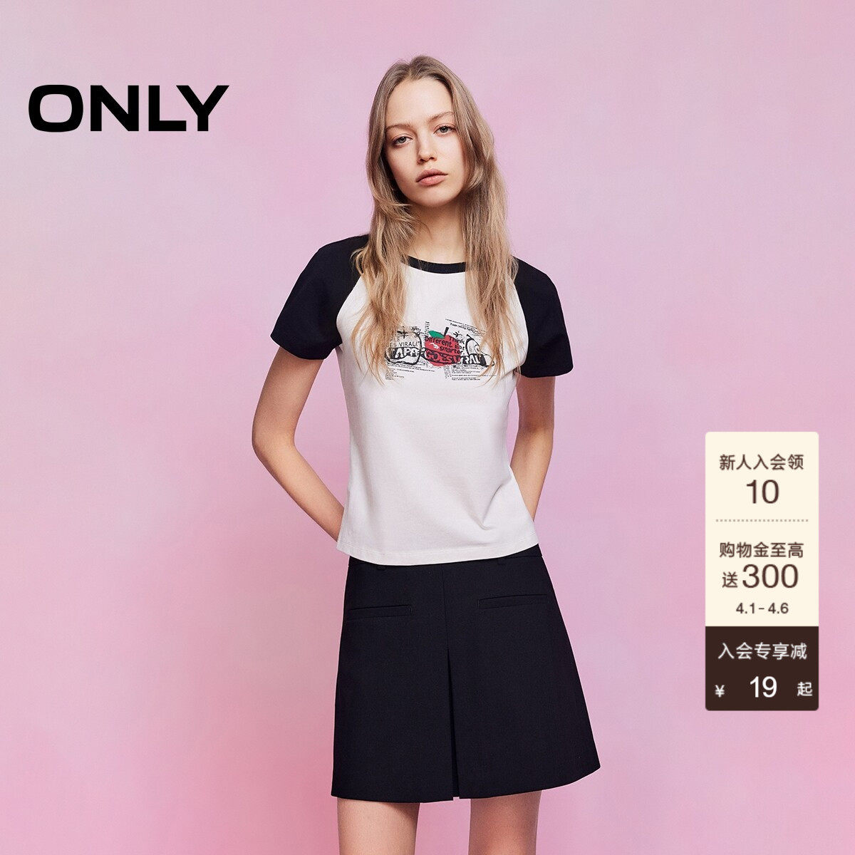 ONLY2026春季新款复古苹果印花显瘦撞色插肩袖短短袖上衣T恤女