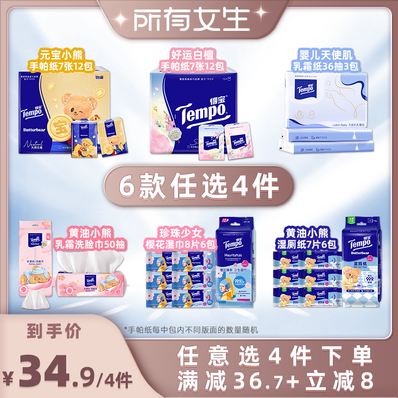 【所有女生直播间】得宝手帕纸乳霜纸湿巾湿厕纸洗脸巾(拍4任选)