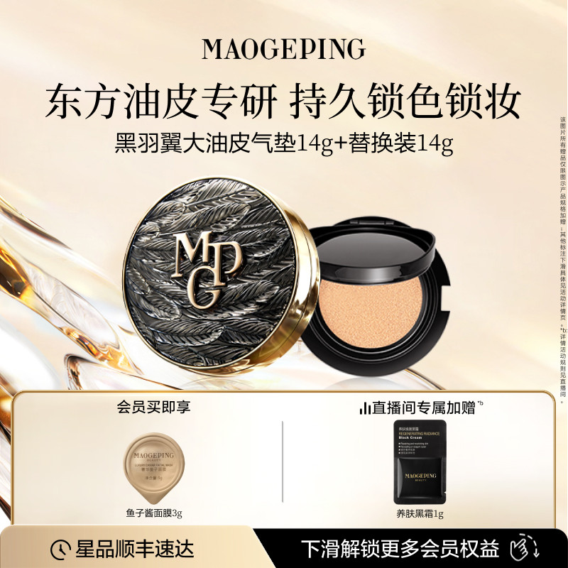 毛戈平黑白羽翼大油皮气垫星耀气垫粉底液遮瑕锁妆持久官方正品