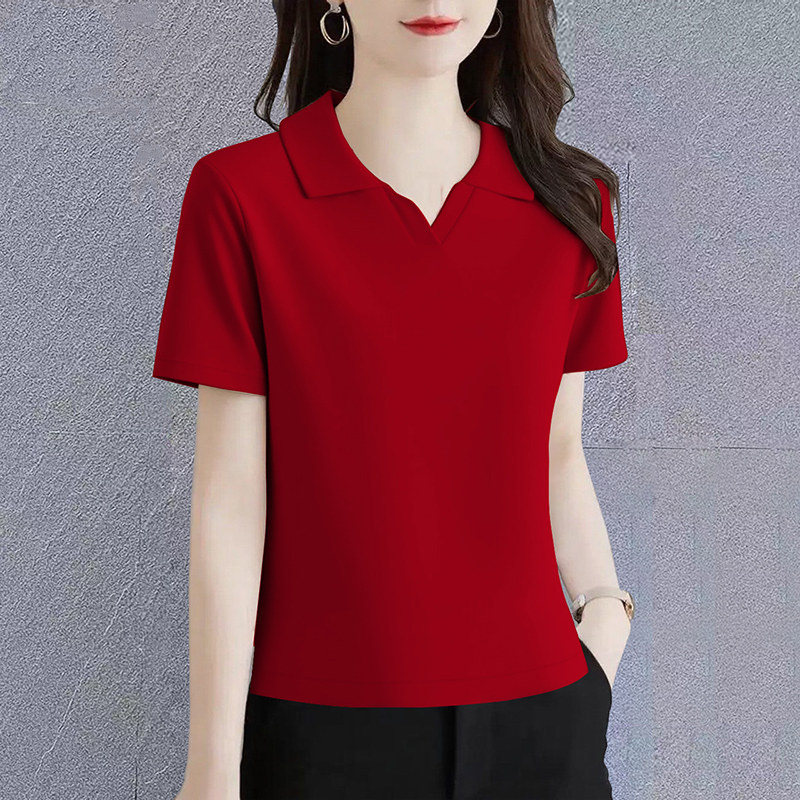 高档冰瓷棉短袖t恤女夏季新款韩版修身显瘦休闲女士polo衫上衣