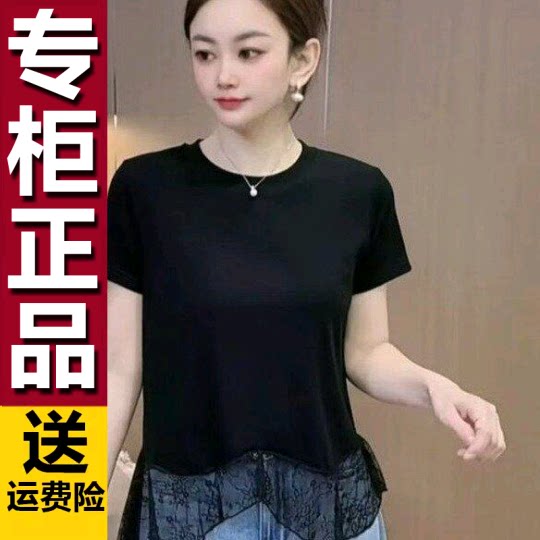 原版减龄不规则下摆蕾丝拼接短袖T恤女夏季薄款时尚百搭显瘦上衣