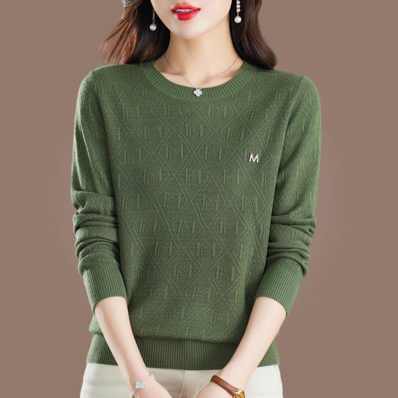 春秋2025新款上衣女桑蚕丝长袖T恤妈妈宽松圆领遮肚子针织打底衫