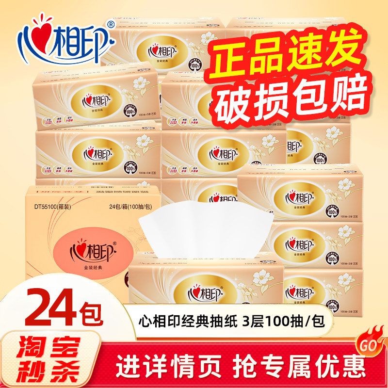 心相印100抽经典家用3层优惠装心心相印餐面巾纸卫生厕所擦手纸