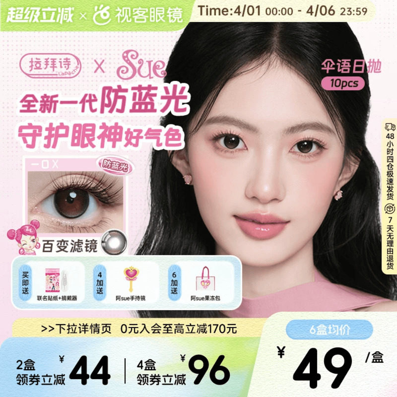 LaPeche拉拜诗阿sue联名伞语防蓝光日抛10片美瞳大小直径隐形眼镜