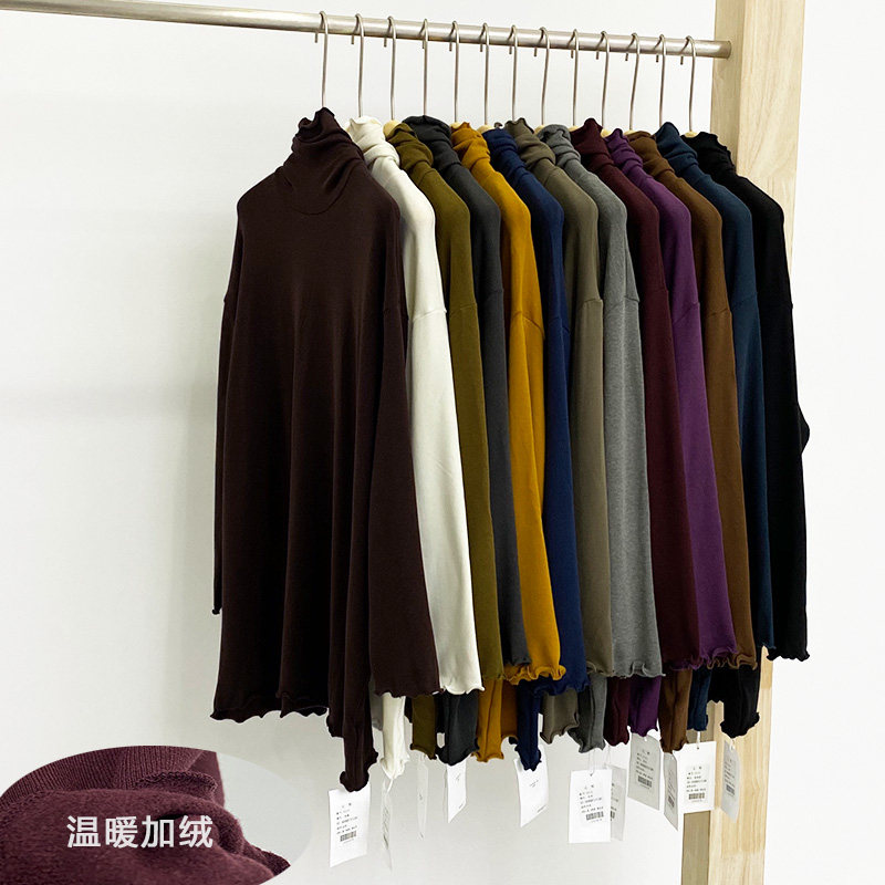 元熙62a1木耳边高领宽松中长打底衫女秋冬大版加绒加厚内搭上衣女