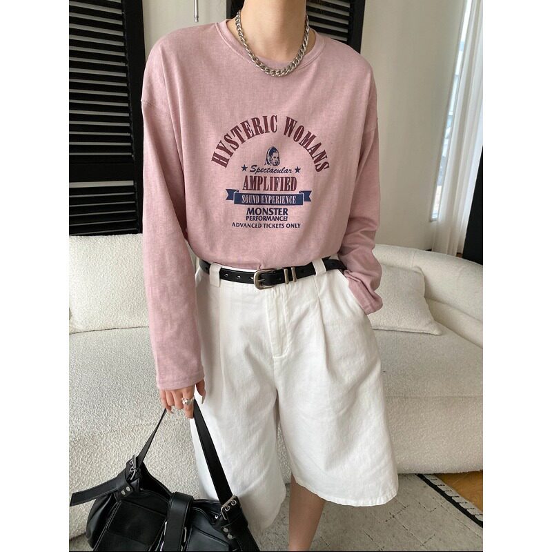 司南 早春新款 美式复古字母印花圆领宽松长袖T恤打底衫 SN8562