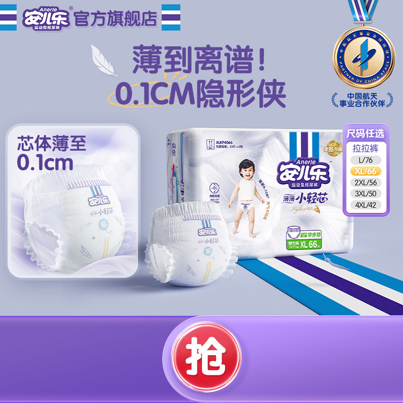 安儿乐小轻芯拉拉裤L-4XL码透气婴儿尿不湿轻薄2包一箱正装官方