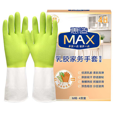 惠造 乳胶手套 4双M码