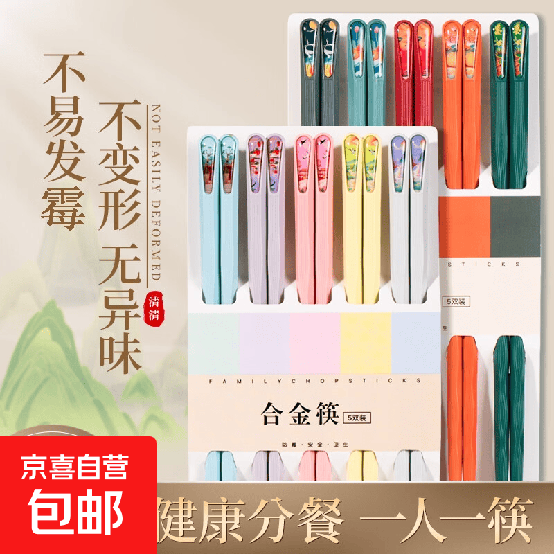 【新客首单价】厨卫挂件合金筷子家用高档防霉新款筷家庭耐高温 国潮筷子【3双】