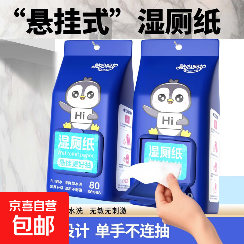 一次性悬挂便携式家用可点断式厕所湿厕纸湿巾木浆湿厕纸巾 悬挂式湿厕纸 80抽*1提 1包