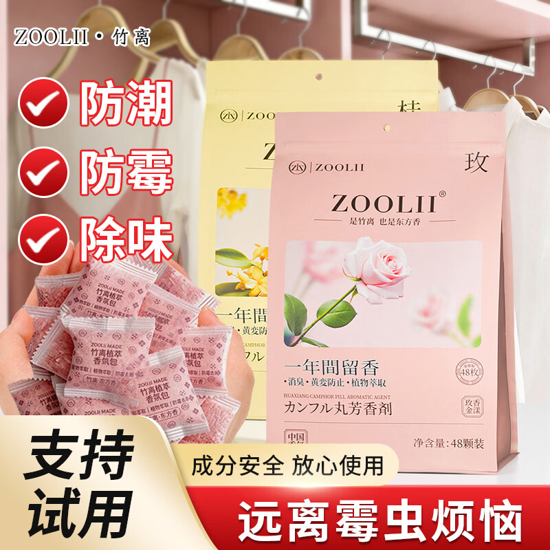 ZOOLII花香樟脑丸驱虫防虫衣柜持久防潮防霉除味香薰香包衣物空气芳香剂 【买1次用1年】桂花香1+玫瑰花香1
