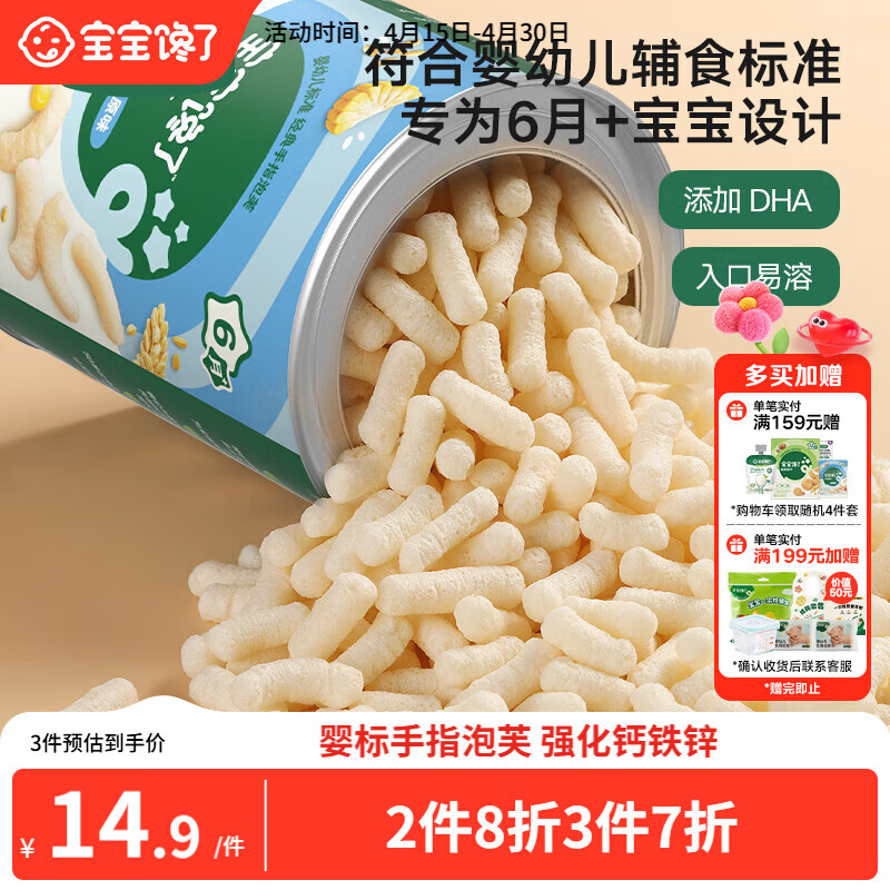 宝宝馋了婴幼儿手指泡芙条原味 婴儿宝宝零食辅食无添加白砂糖36g 6个月
