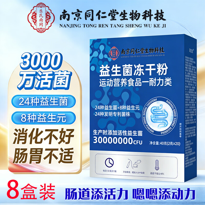南京同仁堂南京同仁堂益生菌冻干粉肠道益生菌益生菌粉乳酸杆菌益生菌冻干粉 8盒装 20条*8盒 益生菌