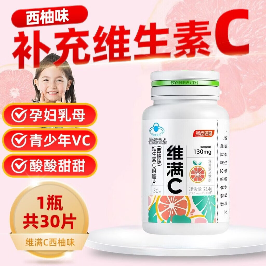 汤臣倍健维满C维生素C咀嚼片西柚味青少年男女儿童成年人补充维C 【体验装】西柚味 30片*1瓶