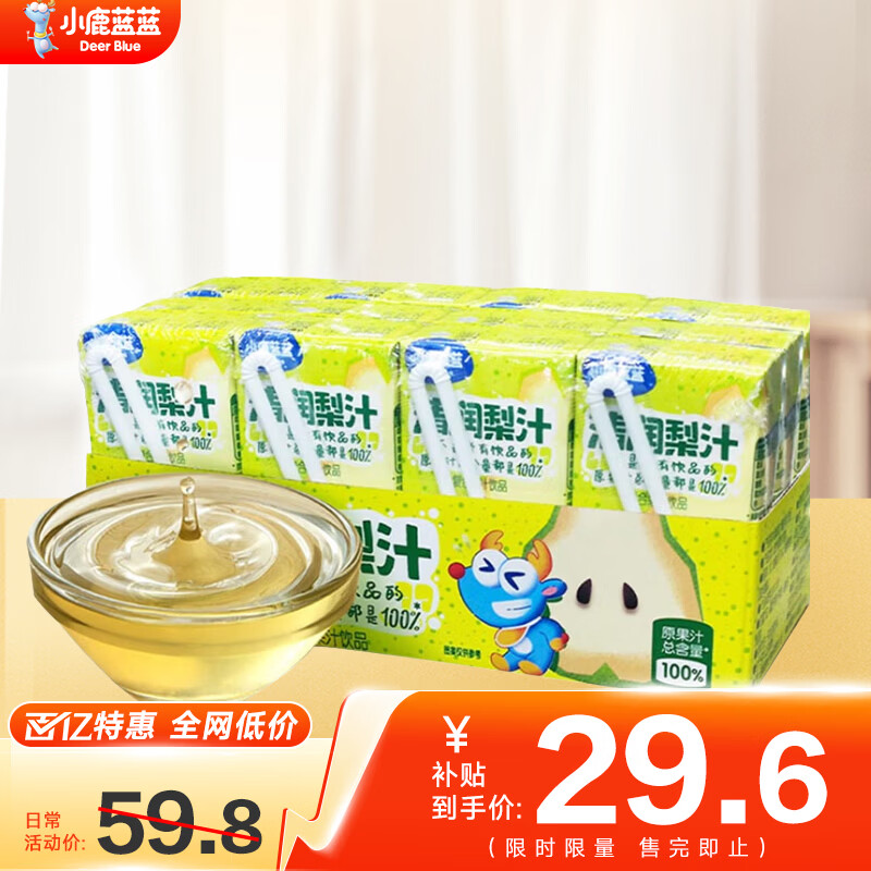 小鹿蓝蓝梨汁山楂汁清润5层保鲜材质不加香精色素防腐剂原果汁总含量100% 【清润梨汁】 125ml*12盒