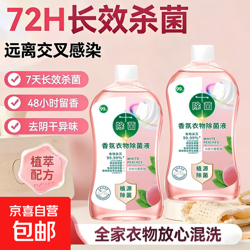 衣服衣物香氛除菌液温和家居消毒洗衣消杀菌白桃与葡萄柚香氛家用 3瓶【300ml】