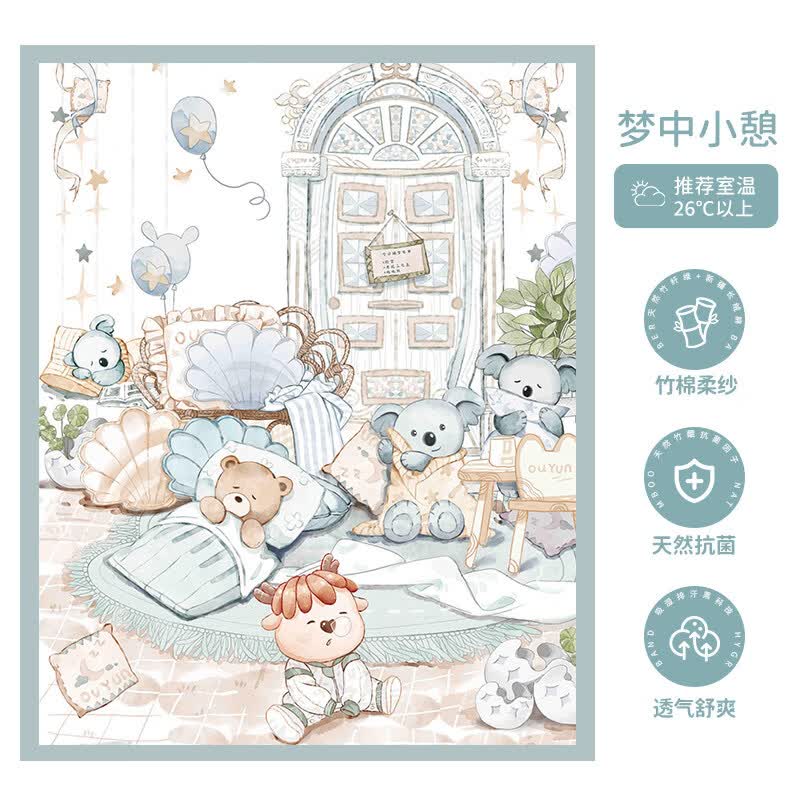 欧孕(OUYUN)婴儿盖毯新生儿毯子宝宝竹纤维纱布毛毯儿童午睡空调秋凉毯 梦中小憩【两层纱布】满印 145cmX110cm
